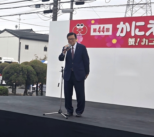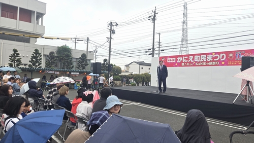 続いて蟹江町44回かにえ町民祭りでご挨拶させていただきました。40を超えるブースがあり多くの町民の皆様がご家族連れで参加されていました。