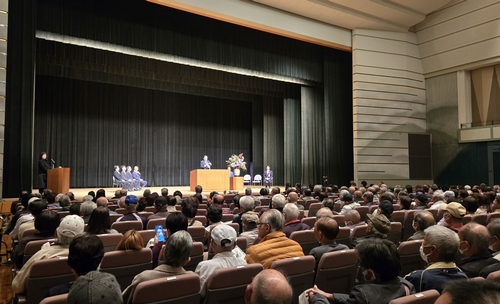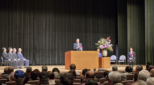 エネルギッシュに頑張る日比市長の市政報告会です、大変な盛況でおめでとうございます。